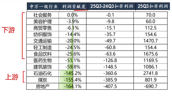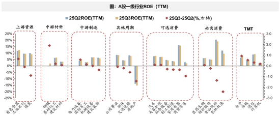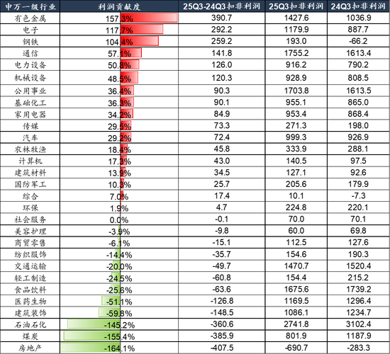 订单(合同欠债)驱动的无息欠债是上行从因。欠债布局上,【有息欠债率】和【无息欠债率】均已不变,【预收账款+合同欠债】反映订单已4季度回升。 A股非金融企业ROE企稳,资产周转率拖累,发卖利润率提振。A股非金融25年三季报ROE(TTM)为6。56%,相对于25年中报的6。57%下行0。01pct,发卖利润率提拔根基对冲资产周转率的拖累。 从利润贡献度来看,剔除金融板块后,有色金属、电子、钢铁、通信、电力设备是三季报业绩回升的从因。
