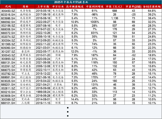 三季度订单延续改善的行业:计较机设备、数字芯片设想、液冷、电池、化学制药、其他电源设备、电网设备、普钢、从动化设备、医药研发外包。 三季报来看,净利润同比持续两个季度加快&三季报累计同比为正的行业集中于:TMT、中逛制制、必需消费、可选消费。 其次,创业板的产能周期显示是持久出清后触底企稳的迹象(21年投资现金流见顶→23年正在建工程见顶→24年固定资产见顶),这就对应着两沉板块【电新、医药】的窘境反转。 最新一期(25年三季报)选股成果看,手艺面信号筛选超预期股票池共112只股票,博杰股份、楚江新材、生益电子等入选,节选股票池部门标的数据如下表。